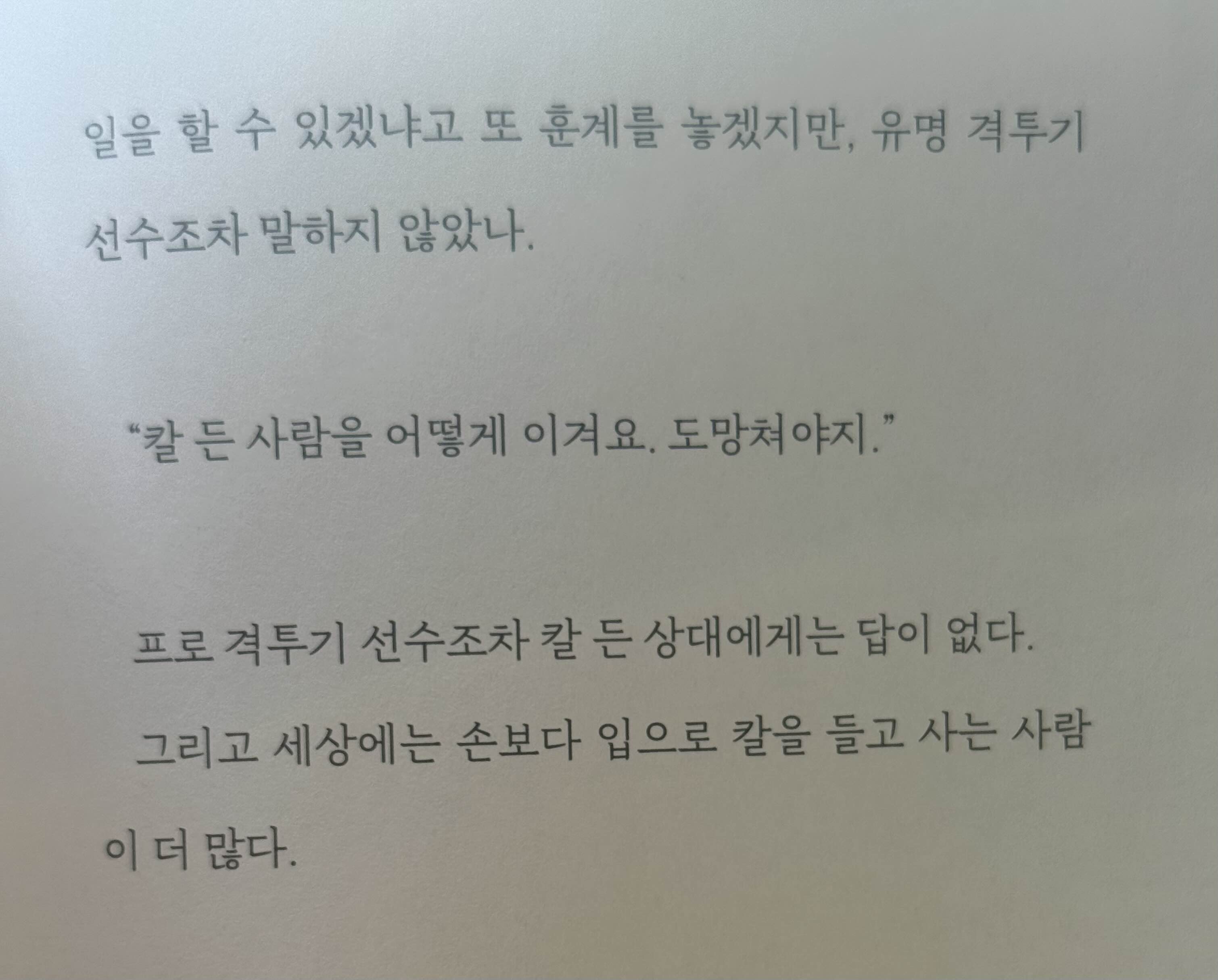 칼 든 사람을 어떻게 이겨요. 도망쳐야지.