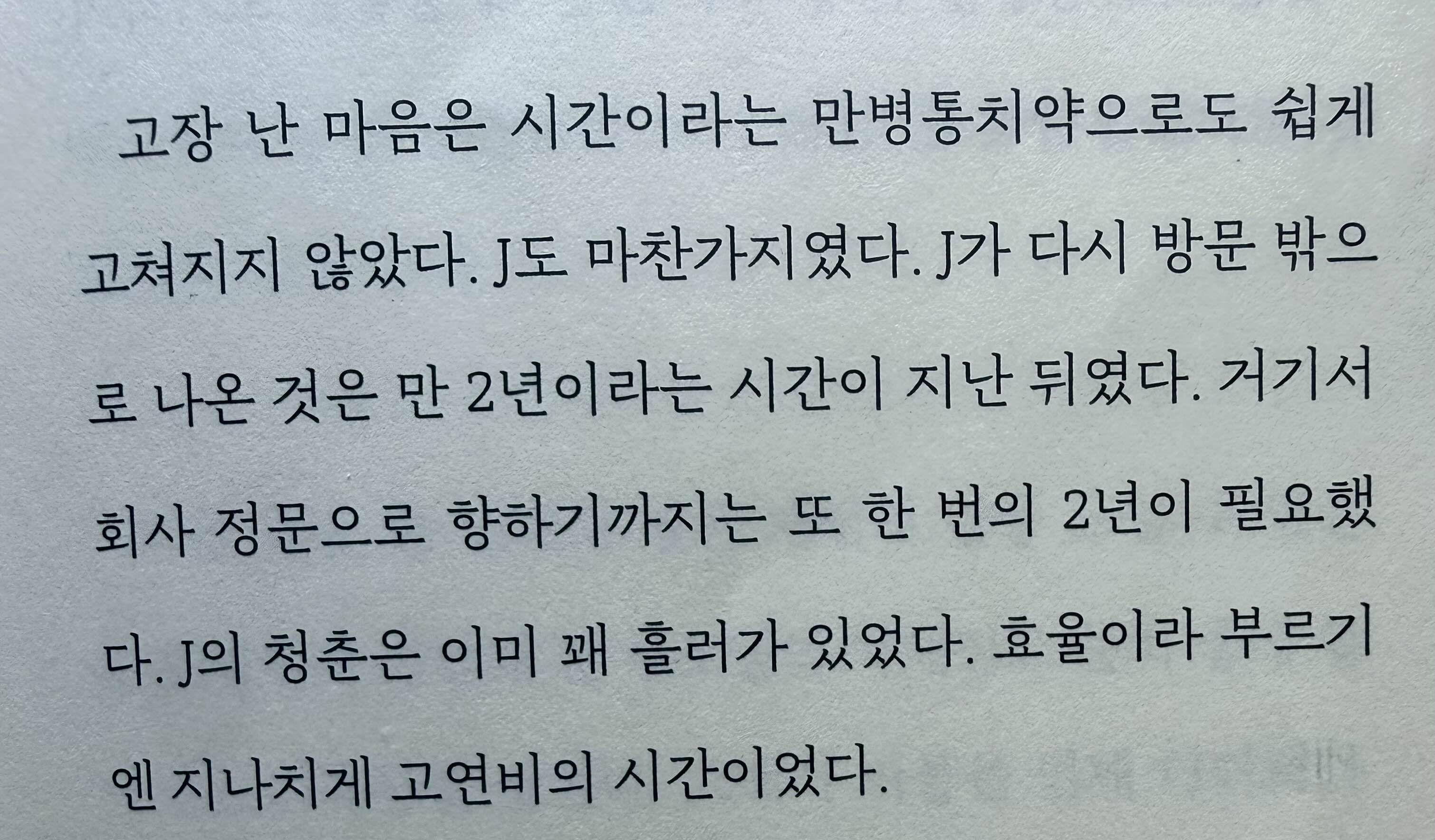 고장 난 마음은 시간이라는 망병통치약으로도 쉽게 고쳐지지 않았다.