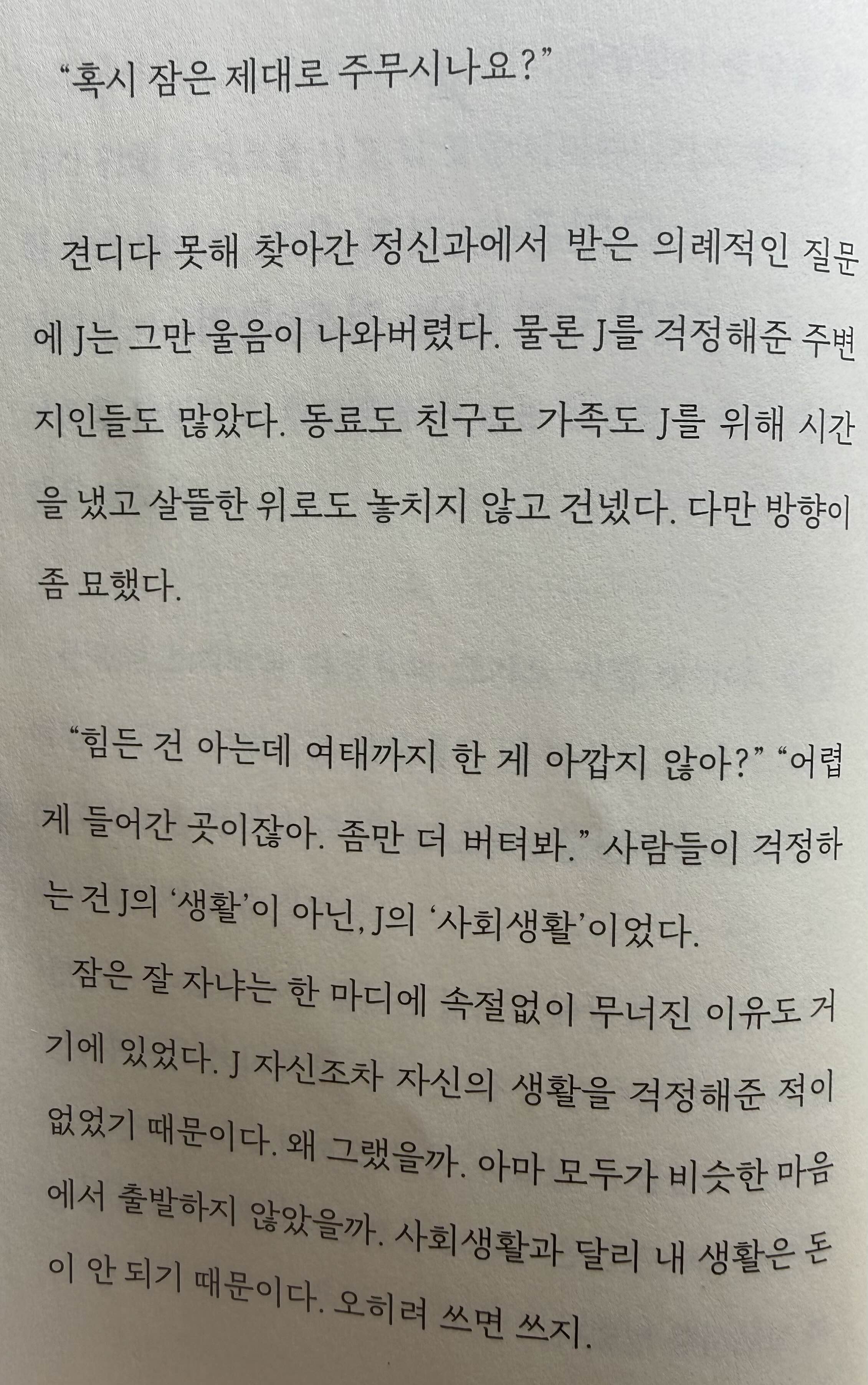 사람들이 걱정하는 건 J의 '생활'이 아닌 J의 '사회생활'이었다.