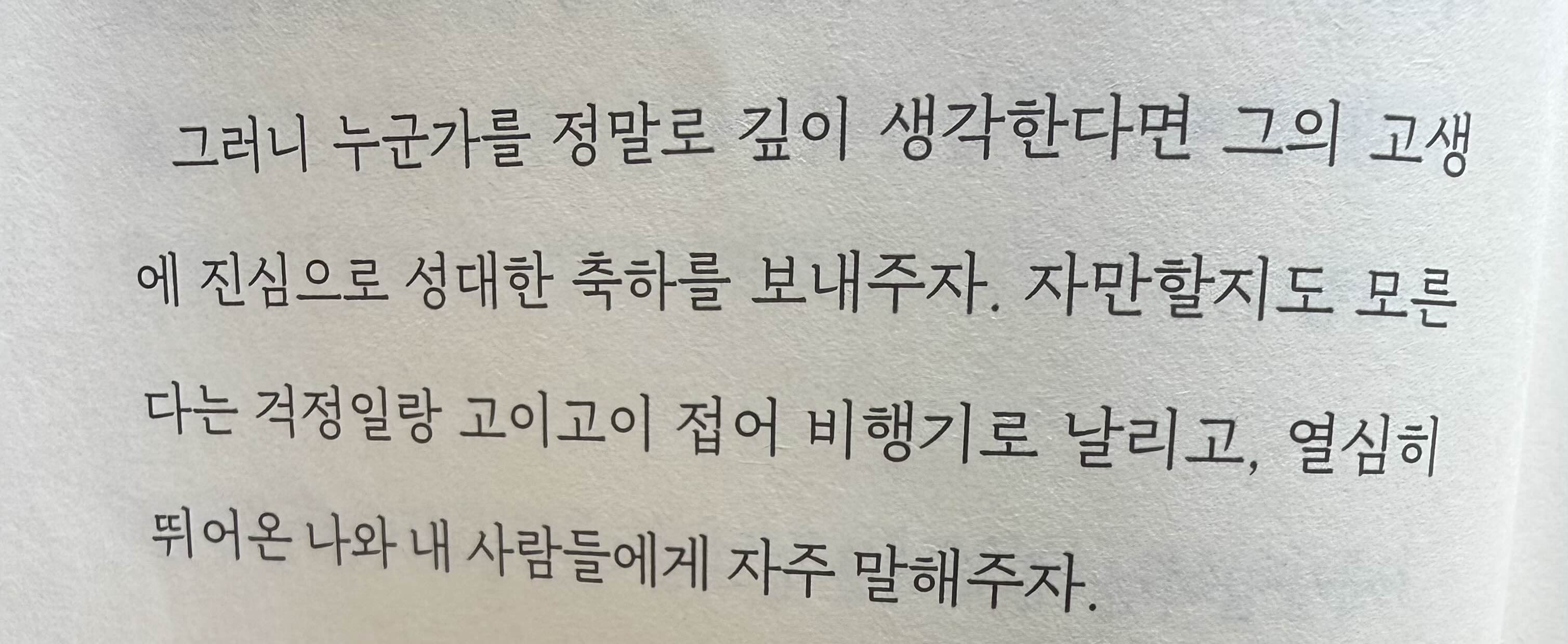 자만할지도 모른다는 걱정일랑 고이고이 접어 비행기로 날리고, 열심히 뛰어온 나와 내 사람들에게 자주 말해주자.